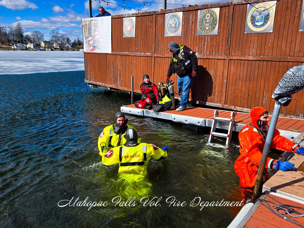 | On Saturday, March 14th, the Mahopac Falls Dive Team was on standby at the Mahopac VFW for the rescheduled Operation Ice Splash event.